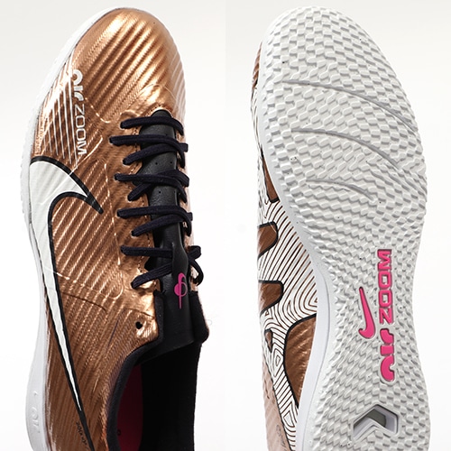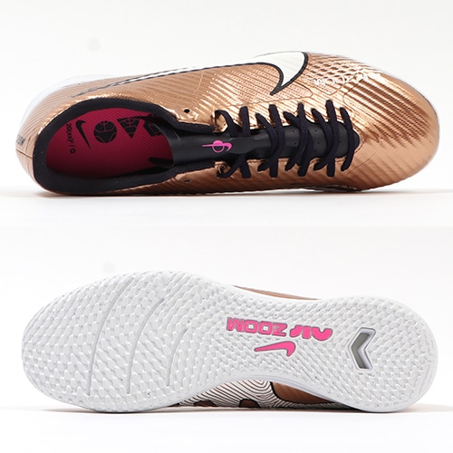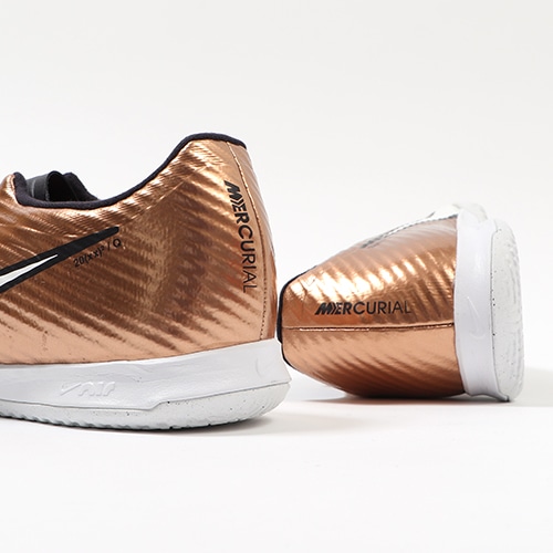 どのポジション、どの場所からも稲妻のようなスピードでゴールを狙える『AIR ZOOM MERCURIAL(エア ズーム マーキュリアル)』のローカット形状「VAPOR(ヴェイパー) 15」のACADEMY(アカデミー)/コアモデルIC(インドアコート)対応トレーニングシューズ。