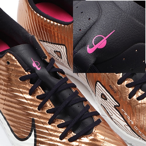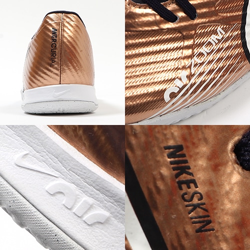 ●アッパーには、柔らかく柔軟性に優れたメッシュ素材に薄いコーティングを施したNikeSkinを使用。 素足でサッカーをしているような感覚で、ボールをコントロールできます。