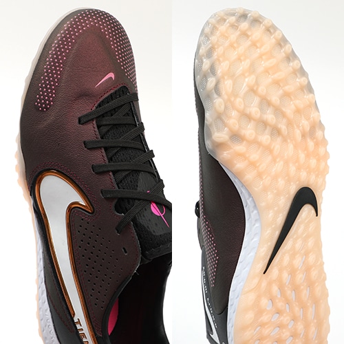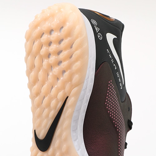 ●ナイキスポーツリサーチラボがプレーヤーの動きを分析。その結果に基づいてデザインされたラバーアウトソールが、人工芝で多方向のトラクションを発揮。