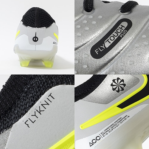 ●インサイド面には3D印刷のマイクロドットを施して重要な部分のボールタッチを高めています。フォームポッドをそぎ落とし、代わりとしてインナーに成形素材を使用。バランスの取れたデザインで、ボールの動きを制御しつつ足とボールの緊密な連携を感じられるようにしています。All Conditions Control (ACC) テクノロジーとの相乗効果で、雨天でも乾燥した天候でもグリップ性を発揮できます。