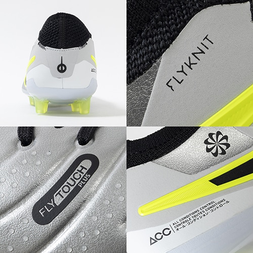 ●インサイド面には3D印刷のマイクロドットを施して重要な部分のボールタッチを高めています。フォームポッドをそぎ落とし、代わりとしてインナーに成形素材を使用。バランスの取れたデザインで、ボールの動きを制御しつつ足とボールの緊密な連携を感じられるようにしています。All Conditions Control (ACC) テクノロジーとの相乗効果で、雨天でも乾燥した天候でもグリップ性を発揮できます。