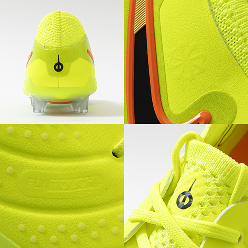 ●「Fly Touch Plus(フライタッチプラス)」エンジニアードレザーを使用。ティエンポのために作られた新しいレザーで、柔らかさ、軽さ、耐久性をもたらし、より優れたコントロールが可能。足首周りのFlyknitがしっかりとしたフィット感を提供します。天然皮革のように伸びすぎることが無くピッチや天候に関わらず、アスリートの足なじみ良い形のままで長い間維持されます。