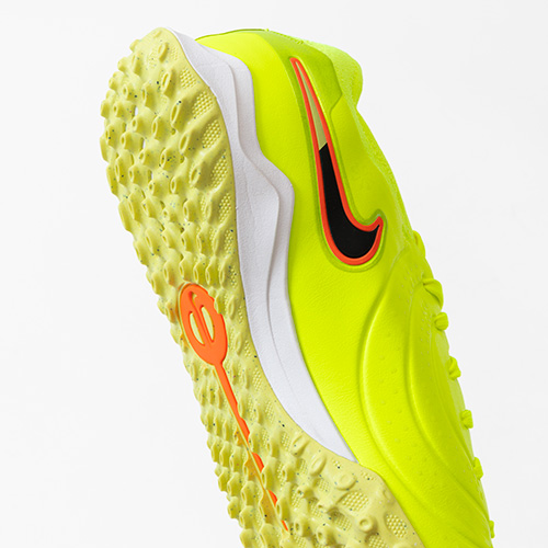 ●ナイキスポーツリサーチラボがプレーヤーの動きを分析。その結果に基づいてデザインされたラバーアウトソールが、人工芝で多方向のトラクションを発揮。柔らかく反発性に優れたフォームで、試合終了までフレッシュでスピーディーな動きをキープ。