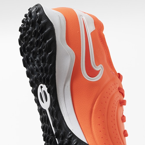 ●ナイキスポーツリサーチラボがプレーヤーの動きを分析。その結果に基づいてデザインされたラバーアウトソールが、人工芝で多方向のトラクションを発揮。柔らかく反発性に優れたフォームで、試合終了までフレッシュでスピーディーな動きをキープ。