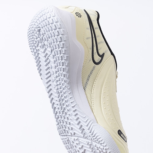 ●ナイキスポーツリサーチラボがプレーヤーの動きを分析。その結果に基づいてデザインされたラバーアウトソールが、ストリートや屋内コートで多方向へのトラクションを発揮。