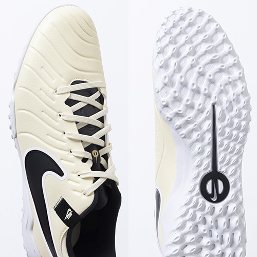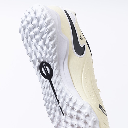 ●ナイキスポーツリサーチラボがプレーヤーの動きを分析。その結果に基づいてデザインされたラバーアウトソールが、人工芝で多方向のトラクションを発揮。