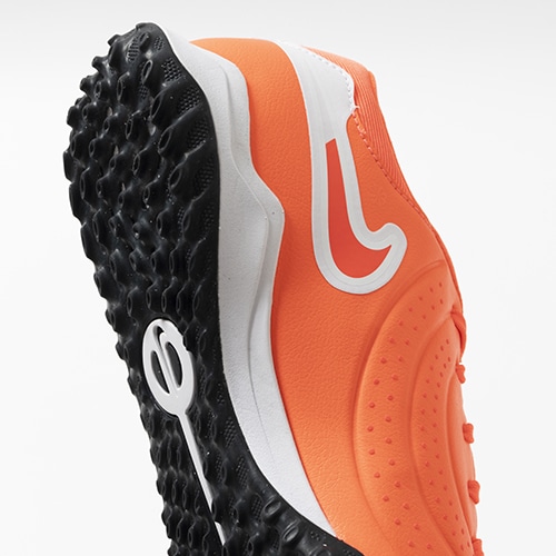 ●ナイキスポーツリサーチラボがプレーヤーの動きを分析。その結果に基づいてデザインされたラバーアウトソールが、人工芝で多方向のトラクションを発揮。