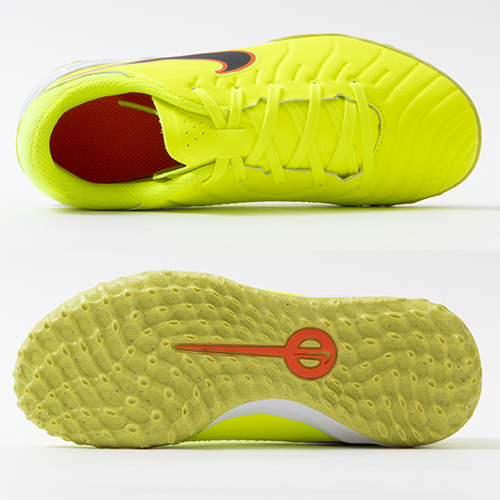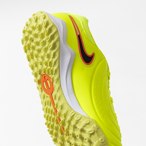 ●ナイキスポーツリサーチラボがプレーヤーの動きを分析。その結果に基づいてデザインされたラバーアウトソールが、人工芝で多方向のトラクションを発揮。