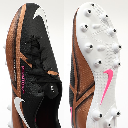 精密さを求めるプレーヤーのために正確なボールタッチとコントロール性を実現し、デザインをアップデートしたNIKE「PHANTOM GT(ファントム ジーティ) 2」のACADEMY(アカデミー)/コアモデルHG(ハードグラウンド)対応スパイク。