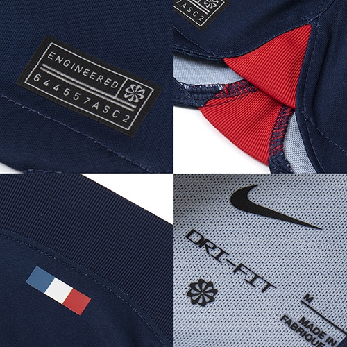 PSG (パリ サンジェルマン) 2023/24 ホーム ユニフォームは、ラ・ヴィル・ルミエール (「光の都」) からインスピレーションを得ています。 ブルーを基調としたジャージーの中央からずれた位置にあるレッドからブルーへのグラデーションは、パリのアイコニックな光が夜空に溶け込んでいく様子をイメージしています。 内側の隠れた部分にはチーム名をあしらい、外側ではフランスの国旗をアピール。 レプリカデザインと速乾テクノロジーを組み合わせたスタジアムコレクション。お気に入りチームをイメージした、試合観戦にぴったりのスタイルです。