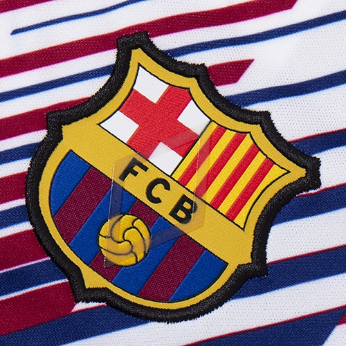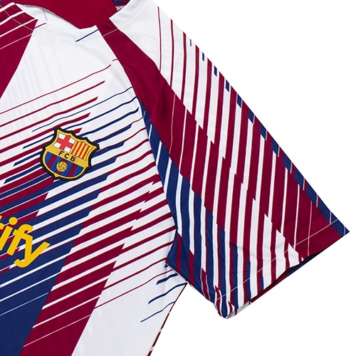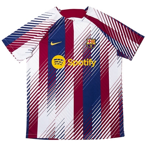 - ラ・リーガ(スペイン)、FCバルセロナの2023-2024シーズンモデルプレマッチシャツ。Nike Dri-FITテクノロジーが、肌から汗を逃がしてすばやく蒸発させ、さらりと快適な状態をキープ。滑らかな肌触りの軽量ニット素材。