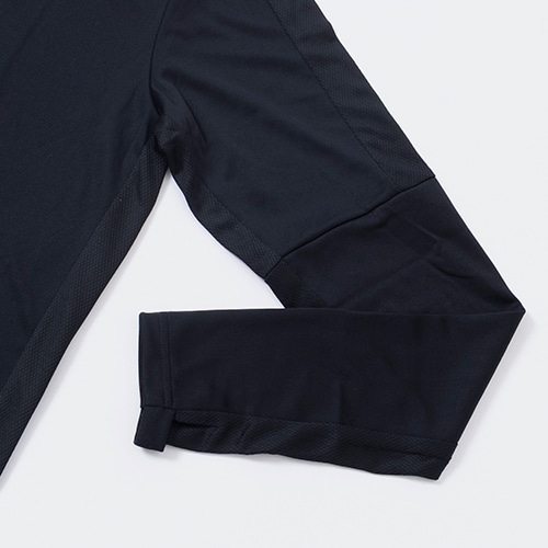 伸縮素材を使用した滑らかな着心地の一枚。フィールドの中で速乾性を発揮します。 トレーニングにもそれ以外の用途にも最適。激しいトレーニングでも、通気性に優れたパネルが涼しい状態をキープします。 サムホールで広い範囲をカバー。袖のずれを防いで手を暖かく保つので、動きを妨げられずにパスやドリブル、シュートが可能です。