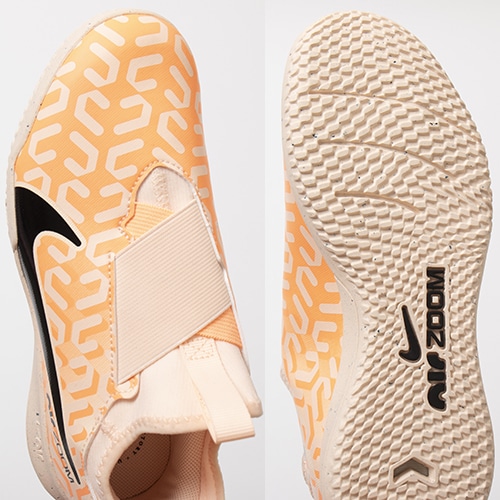 ●超薄型のNikeSkinオーバーレイによって足とボールの距離を縮め、ハイスピードでの正確なボールコントロールをサポート。柔らかく柔軟性に優れたメッシュ素材に薄いコーティングで、素足でサッカーをしているような感覚。