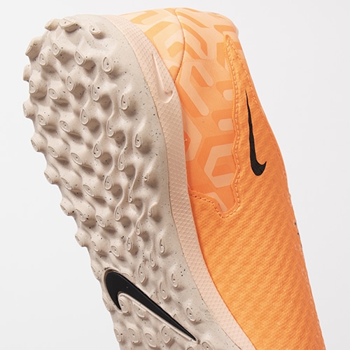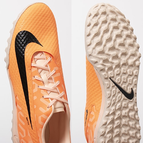●ジェネレーティブテクスチャーを配した人工芝で多方向のトラクションを発揮するラバーアウトソール。横方向の機敏性と可動域を強化し、スムーズな足運びを実現。