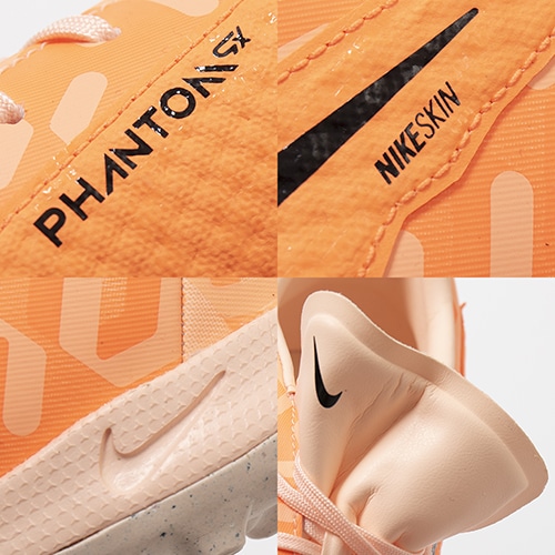 ●エンジニアードメッシュを使用したNikeSkinのタッチゾーンを拡大。ボールを皮膚感覚で捉え、濡れた状態でもドリブルやパスのボールコントロールが向上します。
