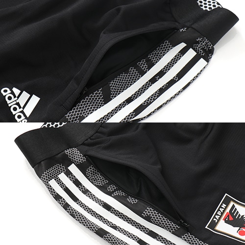 - サッカー日本代表着用トレーニングウェアのトレーニングパンツ。膝下部分に伸縮性に優れたリブ仕上げのパネルを配置しフィット感UP。AEROREADYが汗を吸い取り、ドライで快適な着用感をもたらす。