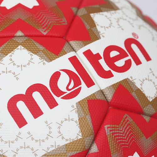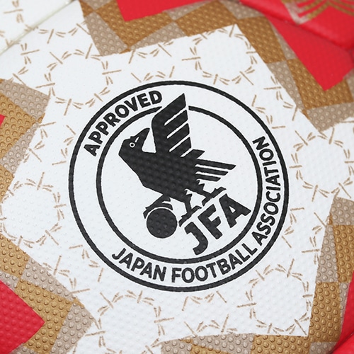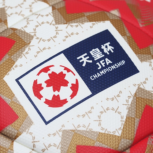天皇杯ロゴの赤と100回目の開催を祝うゴールドを用い、和風で格調の高い雰囲気を感じられるようデザイン。前モデルにも使用したトンボ柄に亀甲紋を組み合わせたオリジナルのパターンを配置。トンボは勝ち虫と呼ばれ、武士に好まれた柄であり、亀甲紋は末永い繁栄を意味する伝統文様です。