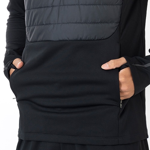 ゆったりとフィットするサーマルフリース素材のレイヤー。寒い日も合成断熱材で保温性抜群です。 ポケットに必需品を収納でき、1/4レングスのジッパーで着脱が簡単。試合を前に、時間を無駄にはできません。