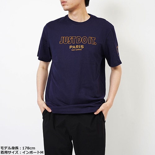 - リーグ・アン、パリ・サンジェルマンの2022-2023シーズンモデルアパレルコレクション、JUST DO IT 半袖Tシャツ。クラシックなフィット感で柔らかい肌触りのTシャツ。