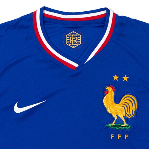 1960年代のクラシックなフランス代表のユニフォームにインスピレーションを得て、フランスの活気に満ちた多様な文化も称えています。 胸元に配した大きめの雄鶏のデザインと、フランス国旗のトリコロールのリブ編みを見れば、どの国のユニフォームかは明白です。