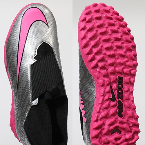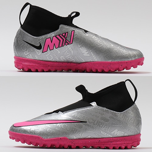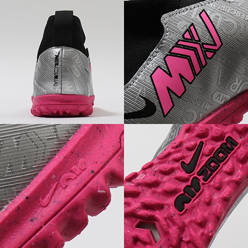 スピードを核に、イノベーションを使命に開発されたマーキュリアルは、何百万というプレーヤーを新たな高みへと引き上げてきました。代名詞とも言えるアイコニックなカラーで、これまでの功績を表現しています。MXXVグラフィック、スウッシュ、アウトソールにハイパーピンクカラーを採用し、メタリックシルバーのベースをクロムでポップに仕上げ、25周年というマイルストーンの重要性を強調。