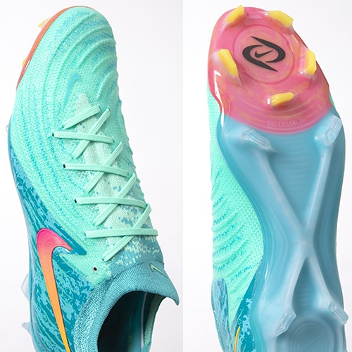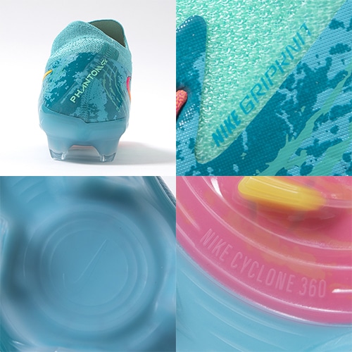 ●アウトソールには「ファントム LUNA」に搭載されていたトラクションである「Nike Cyclone(ナイキ サイクロン) 360」を採用。切り込むときの敏捷性を高め、回転トラクションを軽減することで、プレイヤーは俊敏かつ正確に自信を持ってピッチ上で動けるようになります。ゲームの激しさが増してもしっかりと安定感をキープし、スピードのあるカットインを可能にします。