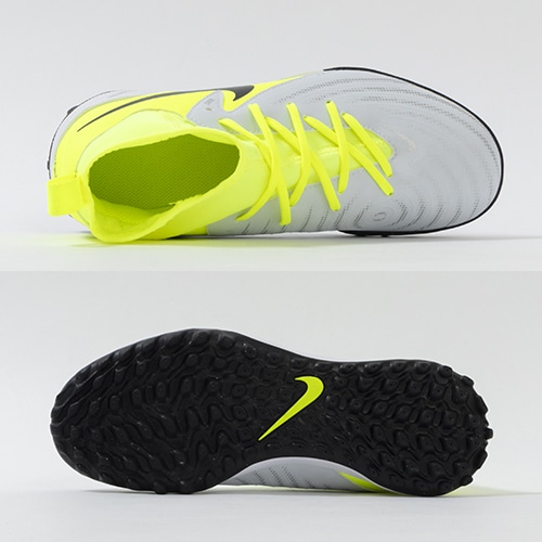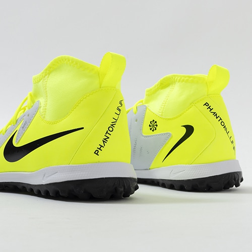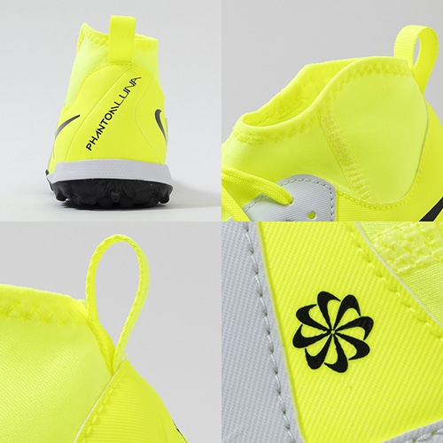 ●ハイカットモデルの「ファントム ルナ 2」は、身体構造に基づいたメッシュの履き口が、足首とかかとに柔らかく快適にフィットします。 履き口に配したさりげないリブ素材で、トラップやパス時の足首より高い位置でのボールタッチをサポート。