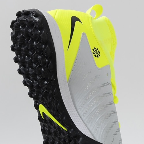●ジェネレーティブテクスチャーを配した人工芝で多方向のトラクションを発揮するラバーアウトソール。横方向の機敏性と可動域を強化し、スムーズな足運びを実現。