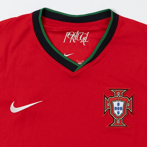 サッカー界で最も広く知られたスタイルを生み出してきたポルトガルの伝統を称えるデザイン。 ポルトガル国旗の鮮やかなカラーで彩ったこのキットが、これまでにも多く登場してきた赤と緑の代表チーム用ホーム ユニフォームの仲間入り。 隠されたデザイン要素で、ヨーロッパの舞台で戦う現在の代表チームのつながりと結束を称えています。