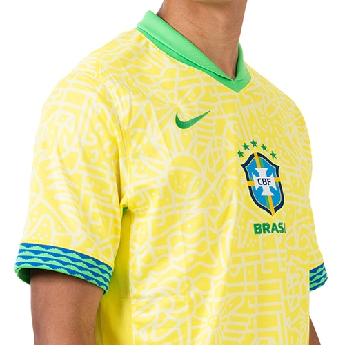 サッカー界で最もアイコニックなユニフォームを、ブラジルの建築、音楽、自然の素晴らしさを称える全面プリントでアップデート。 内側には、国のプライドを称える隠しディテールがあしらわれています。