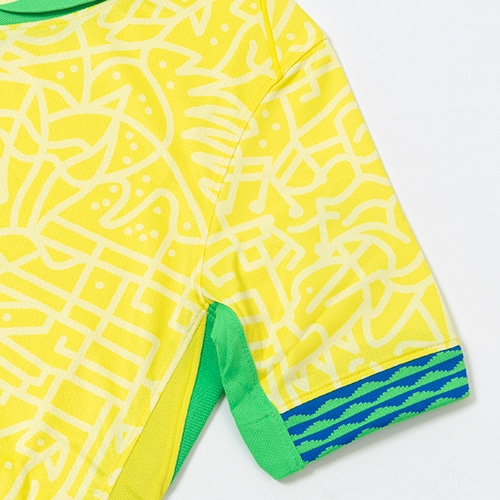 サッカー界で最もアイコニックなユニフォームを、ブラジルの建築、音楽、自然の素晴らしさを称える全面プリントでアップデート。 内側には、国のプライドを称える隠しディテールがあしらわれています。