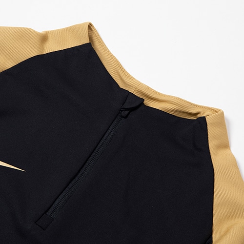 サッカー界の若きスターたちのために特別にデザインされたディテールを採用。プレーを妨げない、スリムですっきりとしたフィット感。Dri-FITテクノロジーが、肌から汗を逃がしてすばやく蒸発させ、さらりと快適な状態をキープ。1/4ジップのデザインでカバー範囲を好みの位置に調節し、シームレスなスタイルを実現。サムループが運動中の袖のずれを防止。使わないときは隠せるデザイン。