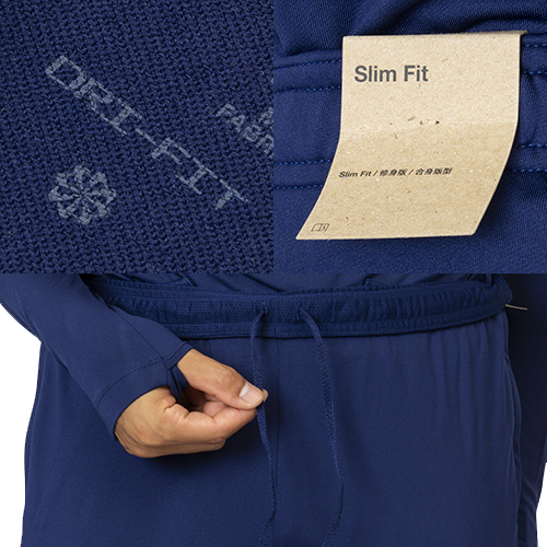 ●Nike Dri-FITテクノロジーが、肌から汗を逃がしてすばやく蒸発させ、さらりと快適な状態をキープ。
