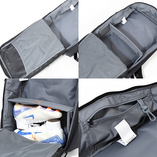 - 通勤にも旅行にも最適なバッグ。メインコンパートメントに仕切りを設け、スニーカーを他のギアと分けて収納可能。ジッパー付ポケットにはラップトップを安全に収納できます。 サイドには断熱性のあるボトルポケット、パッド入りの背面には、スーツケースのハンドルに通せるラゲッジパススルーを装備。