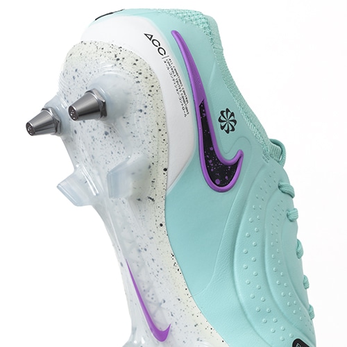 ●インサイド面には3D印刷のマイクロドットを施して重要な部分のボールタッチを高めています。フォームポッドをそぎ落とし、代わりとしてインナーに成形素材を使用。バランスの取れたデザインで、ボールの動きを制御しつつ足とボールの緊密な連携を感じられるようにしています。All Conditions Control (ACC) テクノロジーとの相乗効果で、雨天でも乾燥した天候でもグリップ性を発揮できます。