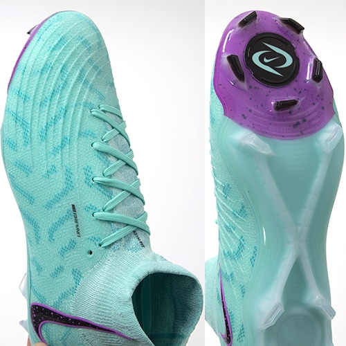 デザイン、設計、テストに女子サッカー選手が関わり、精度を追求した『PHANTOM LUNA(ファントム ルナ)』のELITE(エリート)/ステートメントモデルFG(ファームグラウンド)対応スパイク。