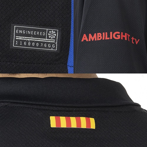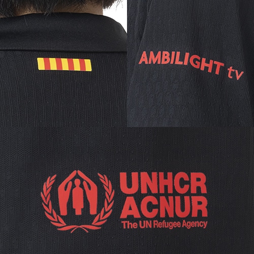未来のユニフォームがどうなるかを想像し、ベースのブラックとバルサのアイコンであるストライプを組み合わせることで、際立たせている。鍵となる要素の一つは、TPUのエスクードで光を反射する仕上げとなり、青と赤のカラーの間に誇り高く輝いている