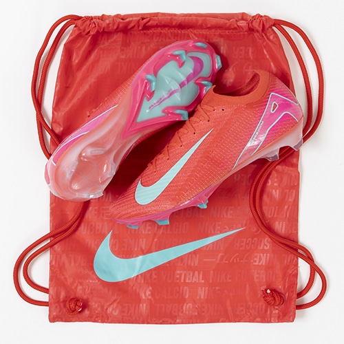 ●マイクロモールディング加工のテクスチャーと粘着性のあるNike Gripknit素材により、スパイクが足にフィットし、ボールタッチの精度がアップ。ハイスピードでドリブルするときやシュートを決めるときのボールコントロールエリアが広がりました。 足の形にぴったりとフィットし、フィールドが濡れていても乾いていても同様にグリップ性を発揮します。