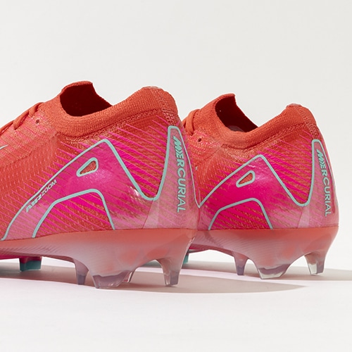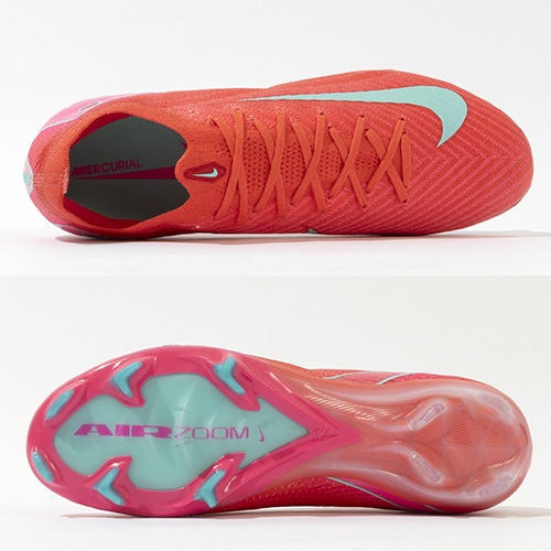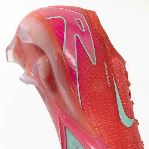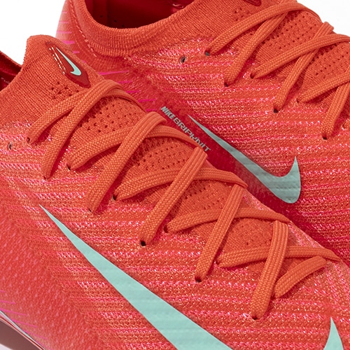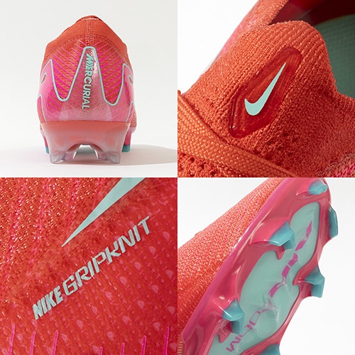 ●全面にFlyknitアッパーを使用してスピードを追求。 驚きの軽さで丈夫なAtomknitをサイドに使用した、軽量でサポート性に優れたデザイン。 Gripknit、Atomknit、Flyknitを組み合わせて、マーキュリアル史上最も薄いアッパーを実現。ボールとの距離を縮めるとともに、すぐに足に馴染みます。