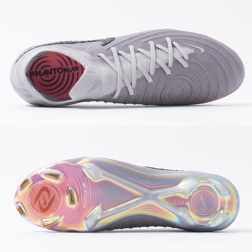 最高のイノベーションを1つのコンセプトに集結させた、新しいNIKE『PHANTOM(ファントム)』。激しいゲームの中でも驚異的なボールタッチを可能にする「PHANTOM GX(ジーエックス) 2」ローカット形状のELITE(エリート)/ステートメントモデルFG(ファームグラウンド)対応スパイク。