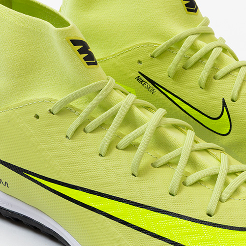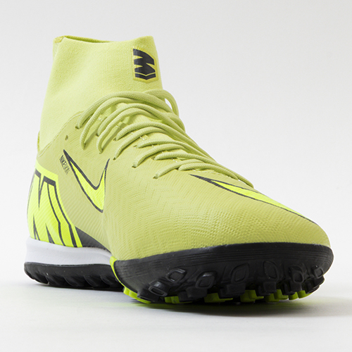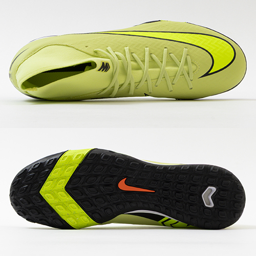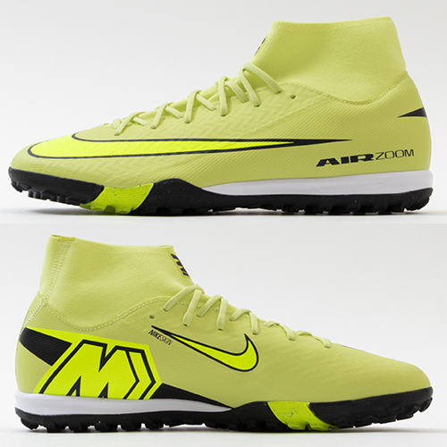 NikeのAirテクノロジーが最大限に機能を発揮する『AIR ZOOM MERCURIAL(エア ズーム マーキュリアル)』の軽量でサポート性に優れ、爆発的なプレーをサポートするハイカット形状「SUPERFLY(スーパーフライ) 10」のACADEMY(アカデミー)/コアモデルTF(ターフコート)対応トレーニングシューズ。