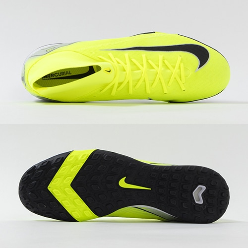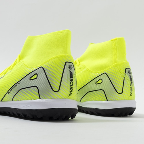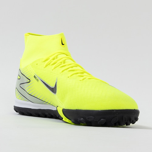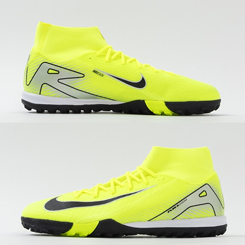 NikeのAirテクノロジーが最大限に機能を発揮する『AIR ZOOM MERCURIAL(エア ズーム マーキュリアル)』の軽量でサポート性に優れ、爆発的なプレーをサポートするハイカット形状「SUPERFLY(スーパーフライ) 10」のACADEMY(アカデミー)/コアモデルTF(ターフコート)対応トレーニングシューズ。