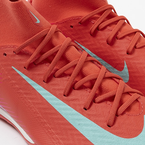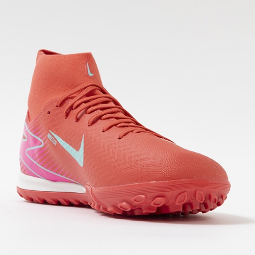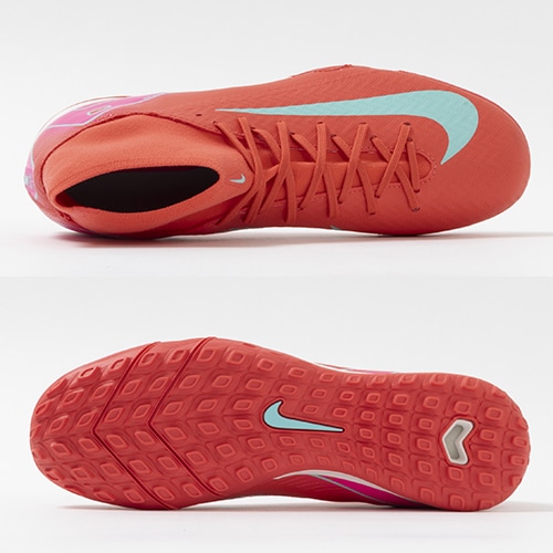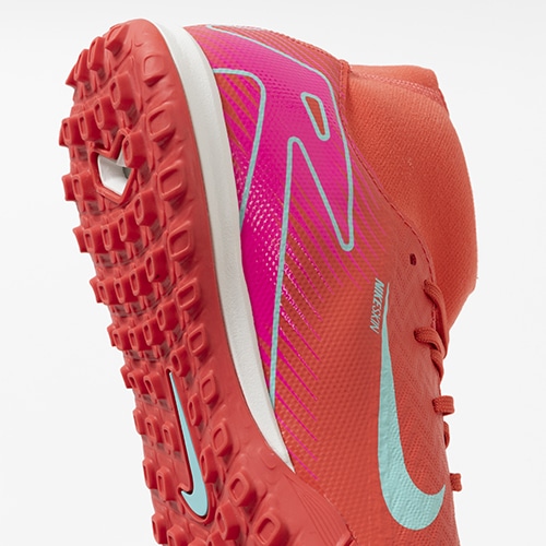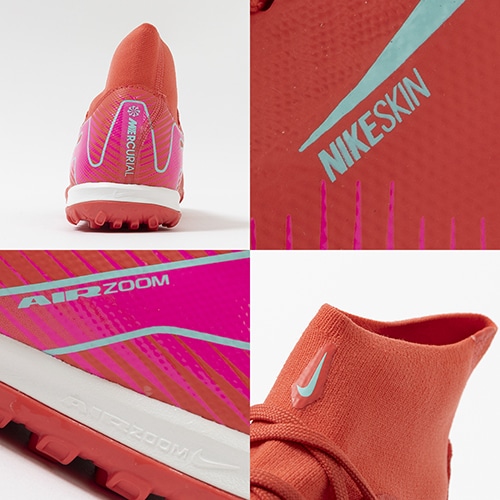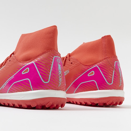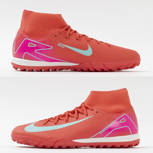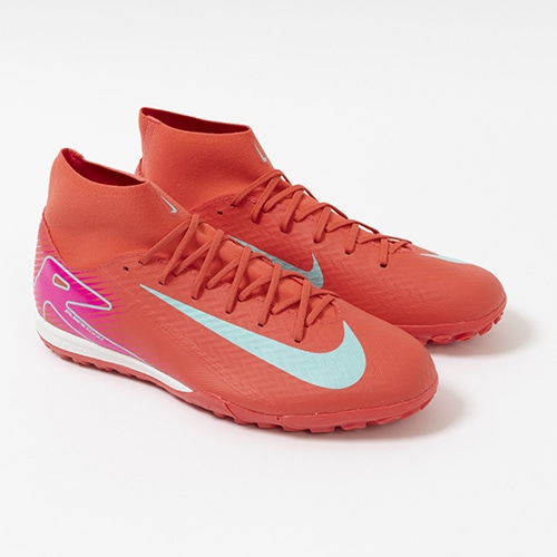 NikeのAirテクノロジーが最大限に機能を発揮する『AIR ZOOM MERCURIAL(エア ズーム マーキュリアル)』の軽量でサポート性に優れ、爆発的なプレーをサポートするハイカット形状「SUPERFLY(スーパーフライ) 10」のACADEMY(アカデミー)/コアモデルTF(ターフコート)対応トレーニングシューズ。