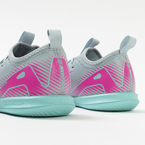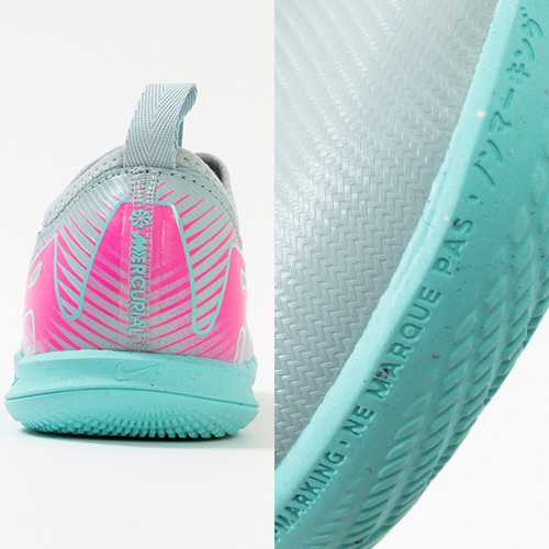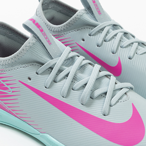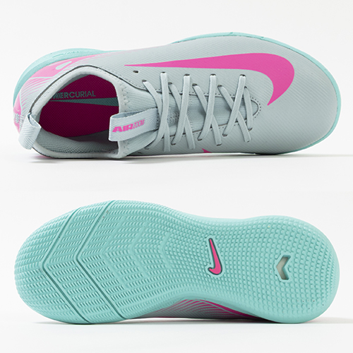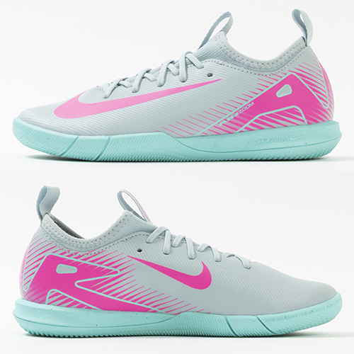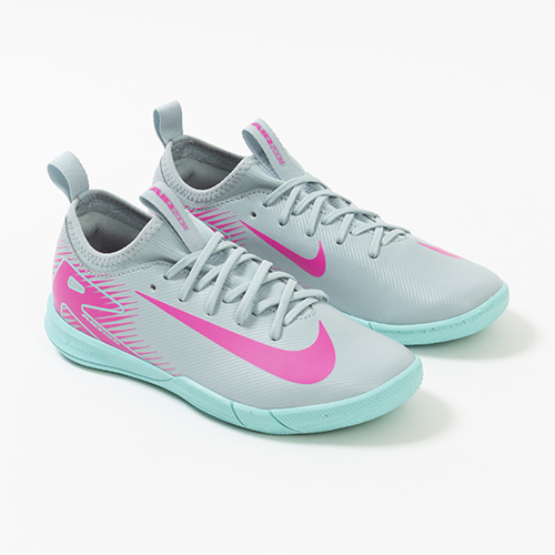 NikeのAirテクノロジーが最大限に機能を発揮する『AIR ZOOM MERCURIAL(エア ズーム マーキュリアル)』の軽量でサポート性に優れ、爆発的なプレーをサポートするローカット形状「VAPOR(ヴェイパー) 16」のACADEMY(アカデミー)/コアモデルIC(インドアコート)対応ジュニア用トレーニングシューズ。