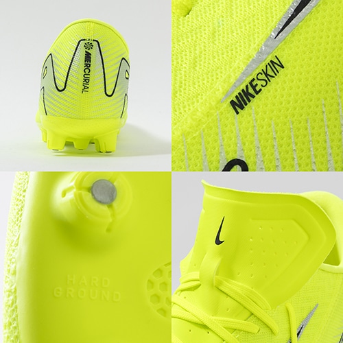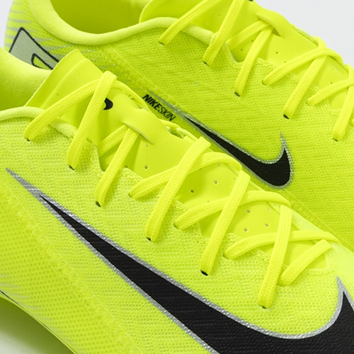●アッパーには、柔らかく柔軟性に優れたメッシュ素材に薄いコーティングを施したNikeSkinを使用。 素足でサッカーをしているような感覚で、ボールをコントロールできます。