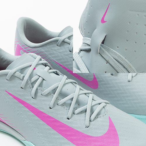 ●アッパーには、柔らかく柔軟性に優れたメッシュ素材に薄いコーティングを施したNikeSkinを使用。 素足でサッカーをしているような感覚で、ボールをコントロールできます。
