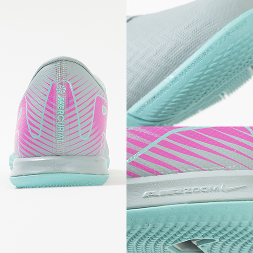 NikeのAirテクノロジーが最大限に機能を発揮する『AIR ZOOM MERCURIAL(エア ズーム マーキュリアル)』の軽量でサポート性に優れ、爆発的なプレーをサポートするローカット形状「VAPOR(ヴェイパー) 16」のACADEMY(アカデミー)/コアモデルIC(インドアコート)対応トレーニングシューズ。