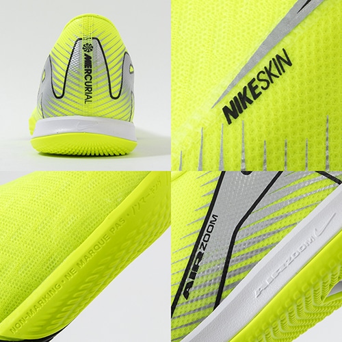 NikeのAirテクノロジーが最大限に機能を発揮する『AIR ZOOM MERCURIAL(エア ズーム マーキュリアル)』の軽量でサポート性に優れ、爆発的なプレーをサポートするローカット形状「VAPOR(ヴェイパー) 16」のACADEMY(アカデミー)/コアモデルIC(インドアコート)対応トレーニングシューズ。