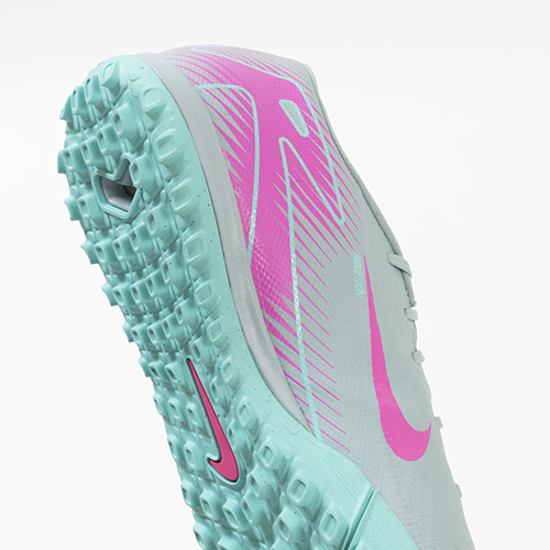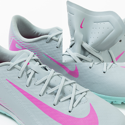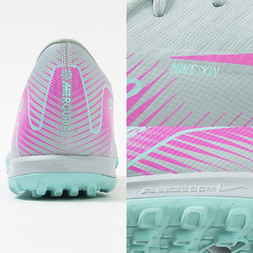 ●アッパーには、柔らかく柔軟性に優れたメッシュ素材に薄いコーティングを施したNikeSkinを使用。 素足でサッカーをしているような感覚で、ボールをコントロールできます。