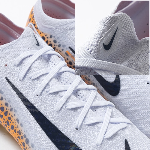 ●全面にFlyknitアッパーを使用してスピードを追求。 驚きの軽さで丈夫なAtomknitをサイドに使用した、軽量でサポート性に優れたデザイン。 Gripknit、Atomknit、Flyknitを組み合わせて、マーキュリアル史上最も薄いアッパーを実現。ボールとの距離を縮めるとともに、すぐに足に馴染みます。
